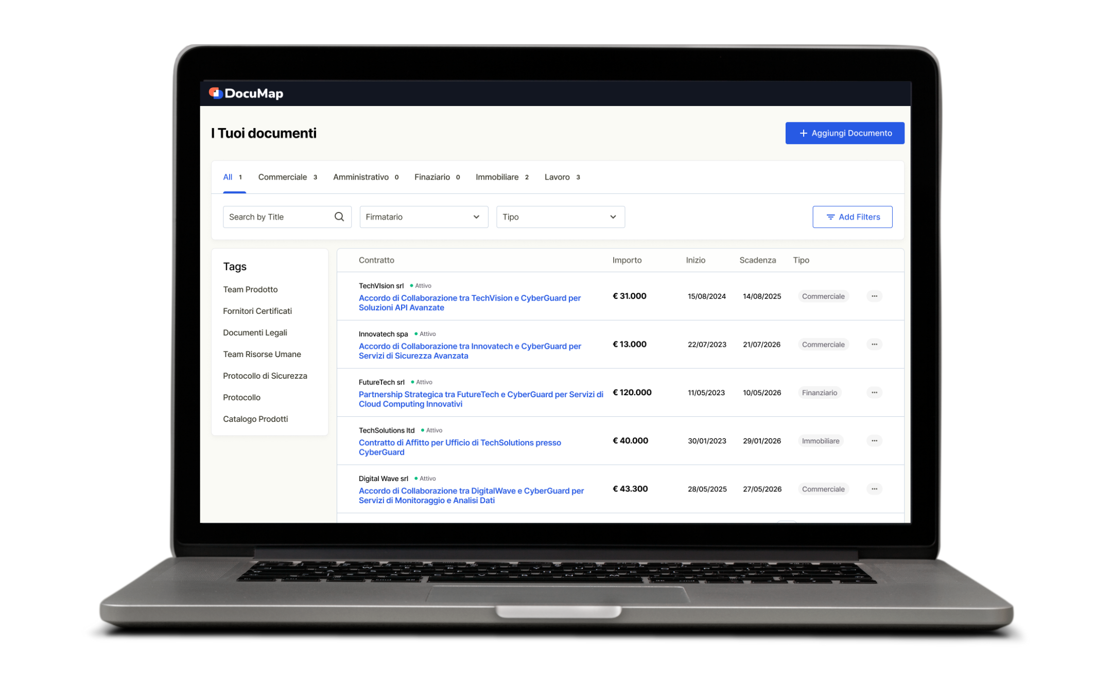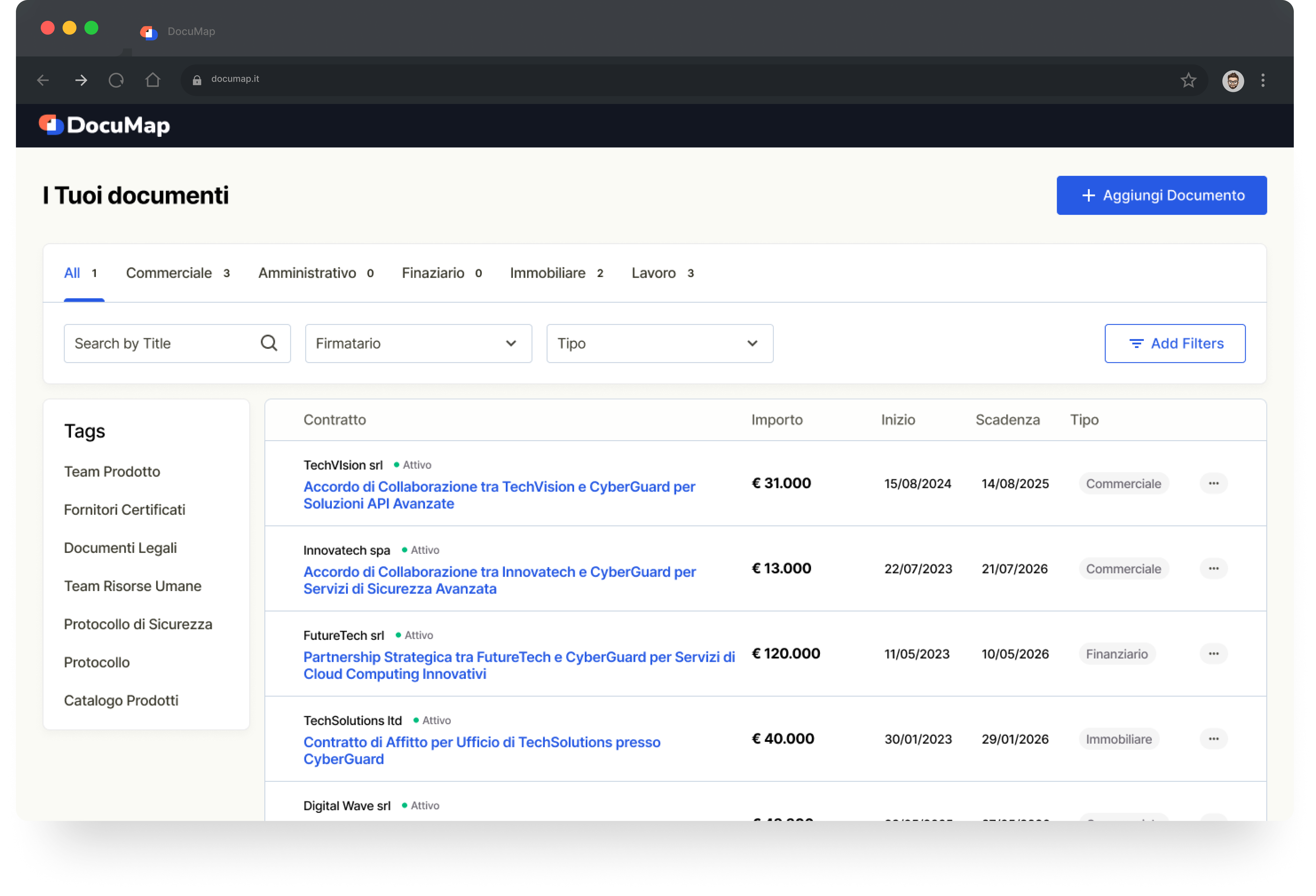 DocuMap è il sistema di gestione documentale pensato per aziende e professionisti che vogliono organizzare automaticamente documenti e contratti con AI